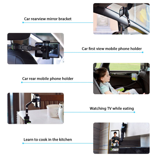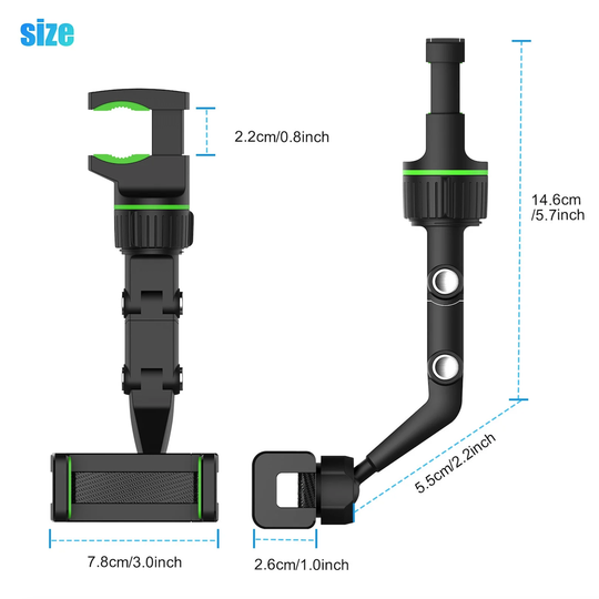Mirror Phone Holder for Car, 360° Rotatable & Retractable Car Phone Mount with Adjustable Length, Multifunctional Rearview Mirror Phone Holder, Compatible with iPhone ,Samsung