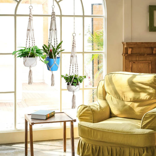 Macrame Plant Hangers, Indoor Hanging Planter Basket, Handmade Decorative Flower Pot Holder Stand, Retractable Pulley Pull Down Hanger Hook, Boho Home Corridor Decor