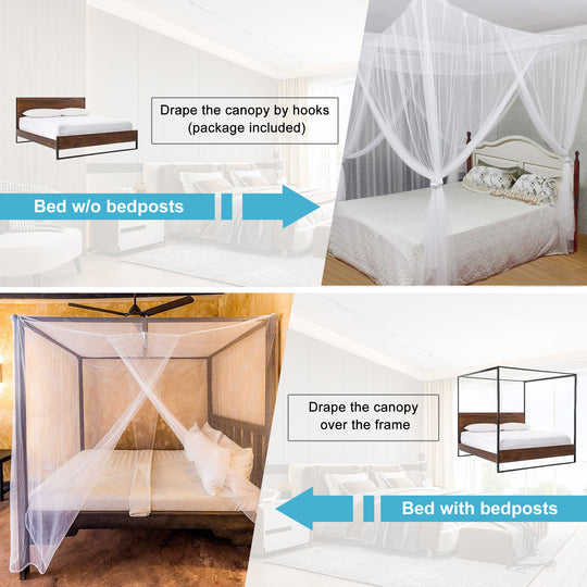 Mesh Bed Canopy Mosquito Net, Full Queen King Size, Four Opening Bed Curtains, White