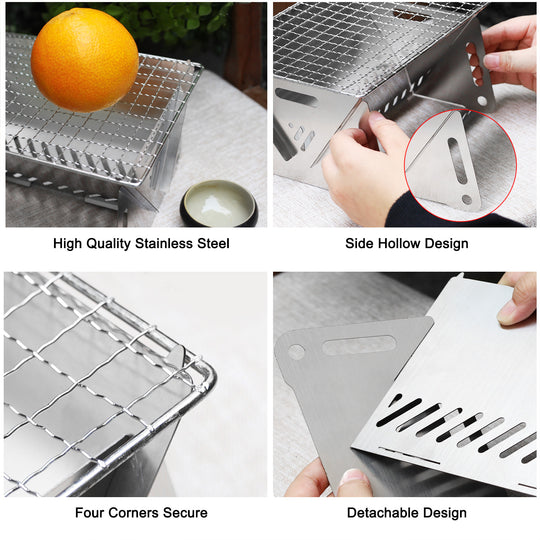 Mini Stainless Steel Folding Grill: Portable BBQ for Outdoor Cooking, Camping, Beach - Compact & Travel-Friendly