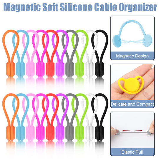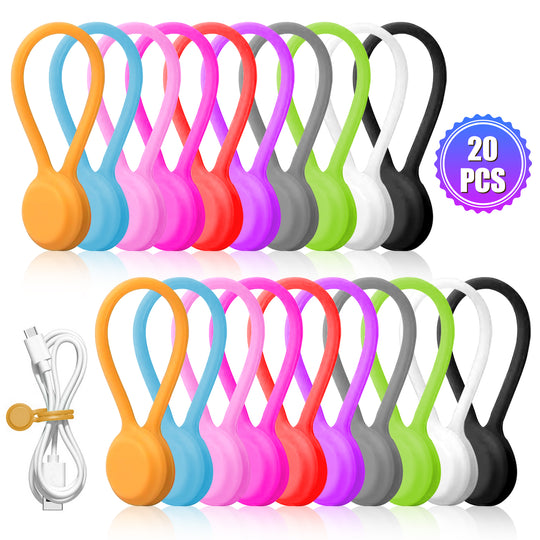 Magnetic Reusable Cable Ties - 20 Pcs Solution for Home/Office Cord Wrap, Cable Organizer - Magnetic Cord Holder with Fridge Magnet Function - Available in 10 Colors
