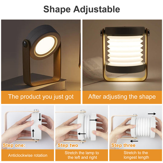 Portable Retractable LED Lantern Lamp, Touch Control Dimmable Night Light, USB Rechargeable, Eye Caring Foldable Desk Reading Lights, Decorative Table Bedside Lamp, White