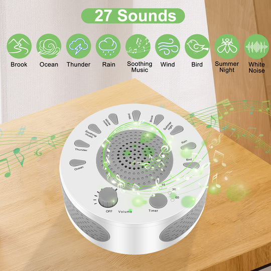 Portable White Noise Machine - 9 Natural & 27 Soothing Sounds for Sleep, Relaxation, and Focus with Timer and Memory Function