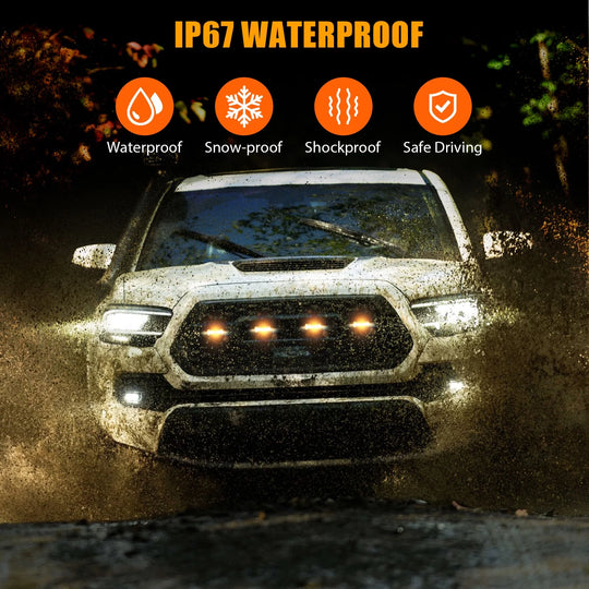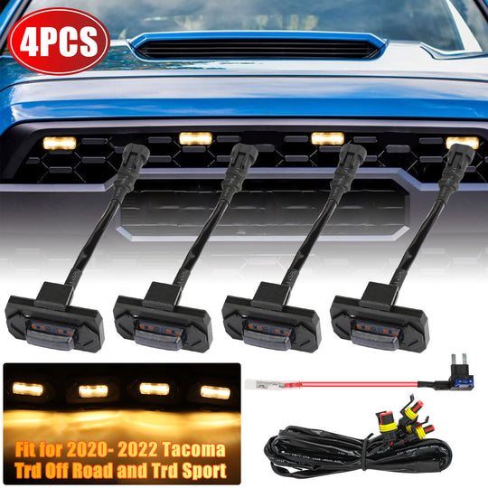4 Pack Amber LED Grille Lights For 2020-22 Toyota Tacoma TRD Sport Offroad Raptor Style Amber LED Grille Lights