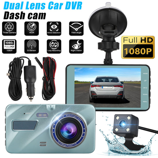 4" Dash Cam: 1080P FHD DVR, Touch LCD, 170° Wide Angle, G-Sensor, Front/Rear Camera (Sky Blue)