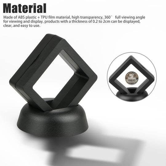 3D Floating Display Case Stand Holder, Military Challenge Medallion Display, Military Coin Clear Box, Floating Effect Holder,1.96 "x 1.96" x 0.78", Black