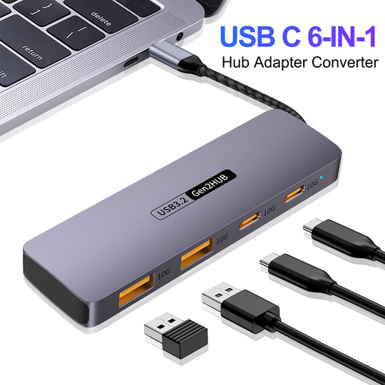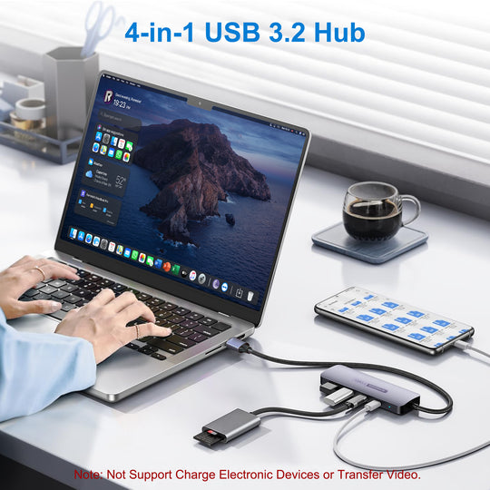4 Port USB 3.2 Gen 2 Hub - Ultra Slim Multiport Adapter with Dual USB-C & USB-A Ports for High-Speed Data Transfer for Laptop, Flash Drive, HDD, Printer, Mouse, Keyboard, Computer Accessories