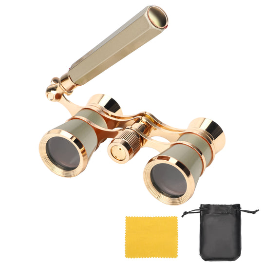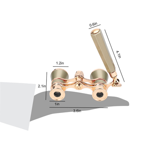 3x25 Classic Foldable Binocular with Handle Retro Design Metal Body Optical Lens Theatre Telescope Sports Game Bird Watching for Adult Women Kids, Golden-Handle [GOLD]