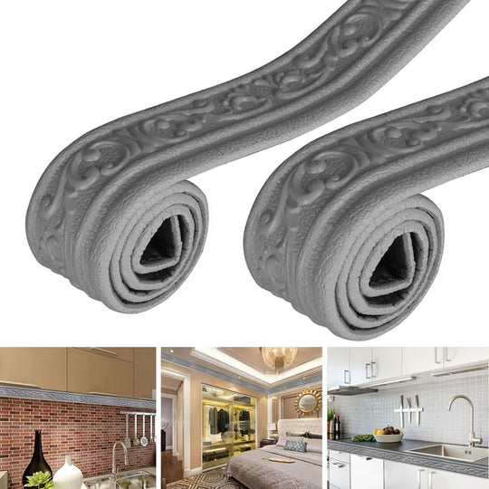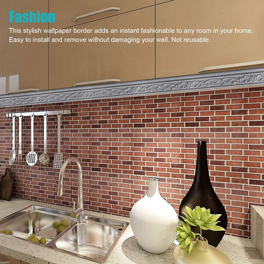 7.5"x 3.2" PVC Self Adhesive Waterproof Wall Border, 2/1pcs 3D Flowers Sticky Decorative Wall Lines Wallpaper Border for Home, Office, Hotel DIY Decoration, White/Gray