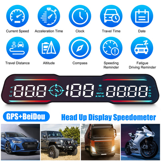 7 Inch Universal GPS Speedometer HUD - Advanced Heads Up LCD Display with Mph Digital Speed, Compass, and Altitude Speeding Alarm Fatigue Driving Alarm for All Vehicles
