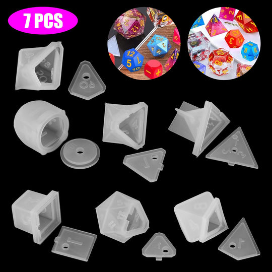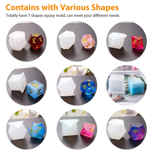 7pcs Dice Shape Silicone Mold, Epoxy Resin Mold Kit Dice Game Silicone Art Craft D&D Custom
