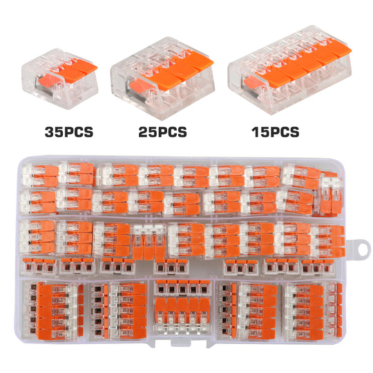 75PCS Splicing Connectors 2/3/5 Conductor Compact Assortment WAGO STYLE Replacement 221-412 Kits for Electrical Solid Stranded Flexible Wires
