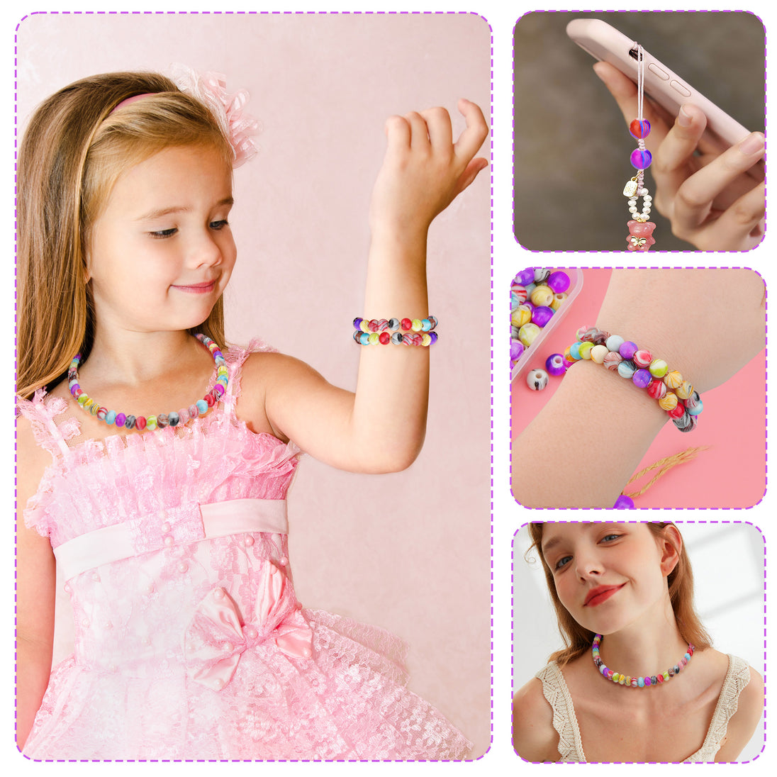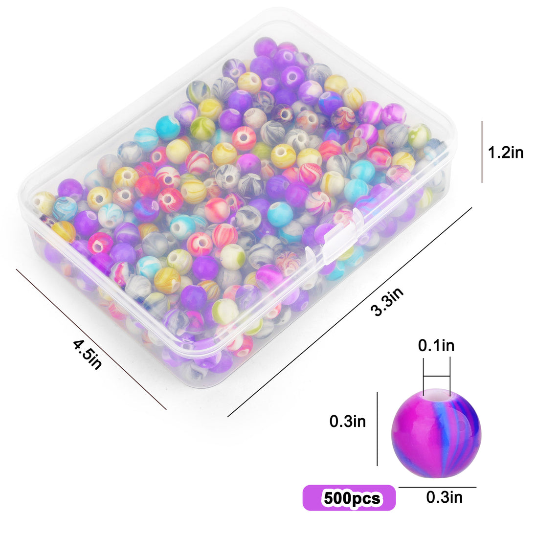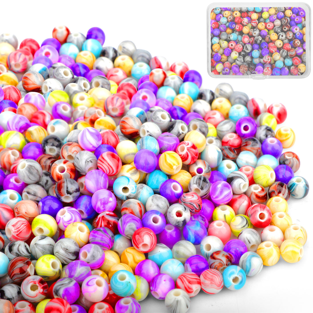 00 Pcs 8mm Multicolor Ink Pattern Acrylic Round Beads - Kids Arts and Crafts - Classroom Sensory Learning Loose Beads with Storage Box for Bracelet Necklace Jewelry Making