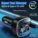 30W Fast Charging Bluetooth 5.3 FM Transmitter Car Adapter,with Dual Mics, 7 Color LED & U Disk, USB AUX Radio Hands-Free Calling & Music Playback