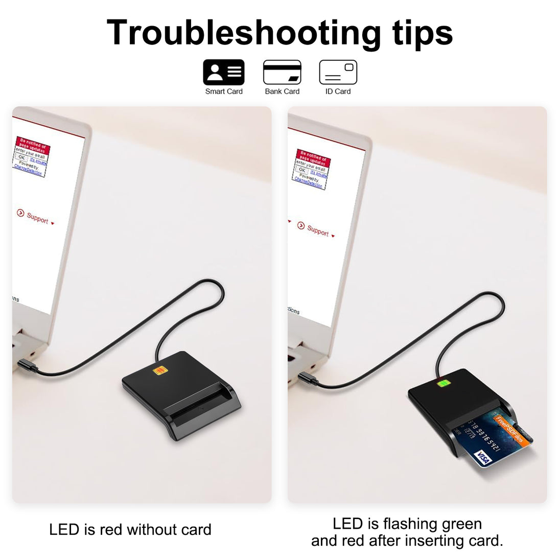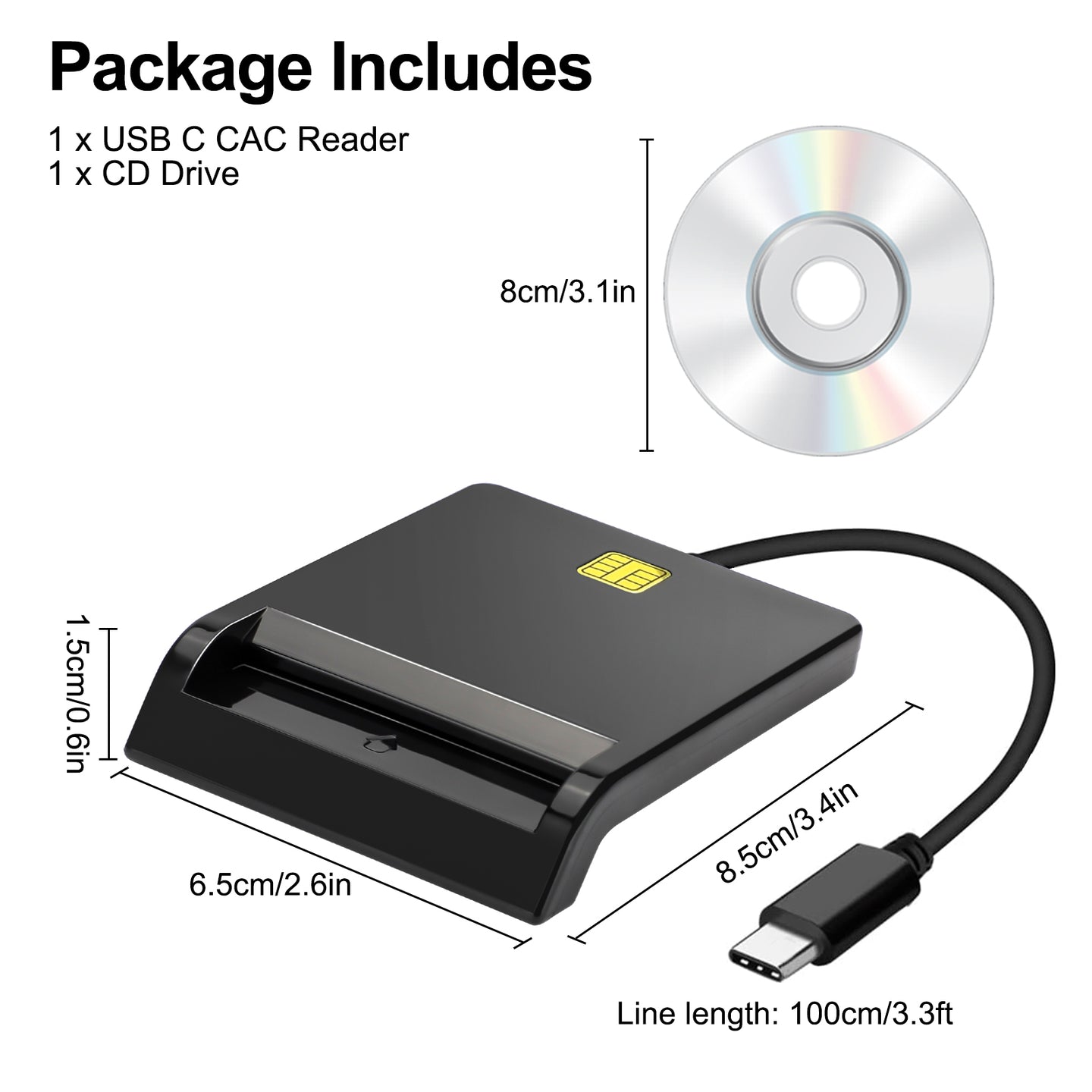 CAC USB-C Common Card Reader - DOD Military Secure Access for Digital Banking and Identification - Compatible with Windows, Mac OS, and Linux - Black