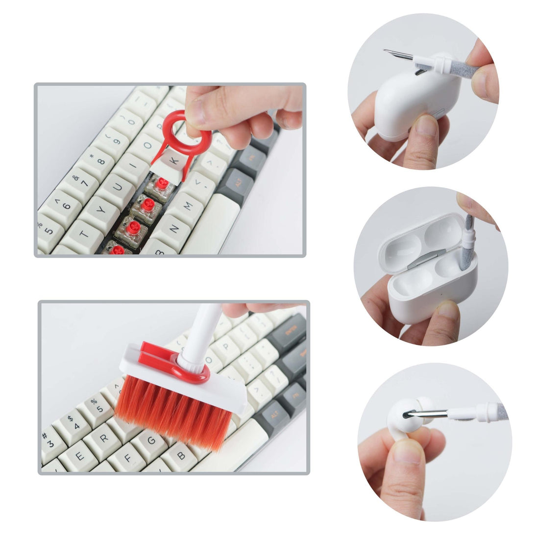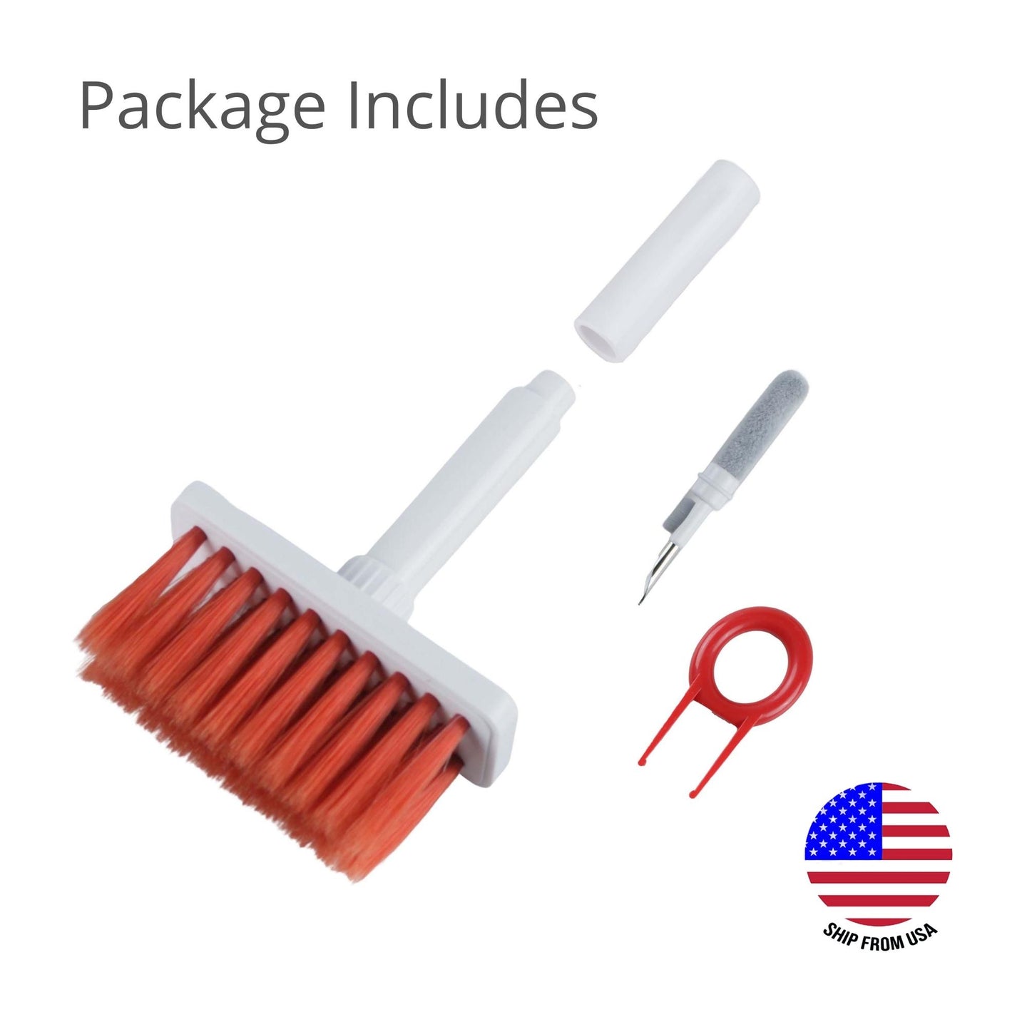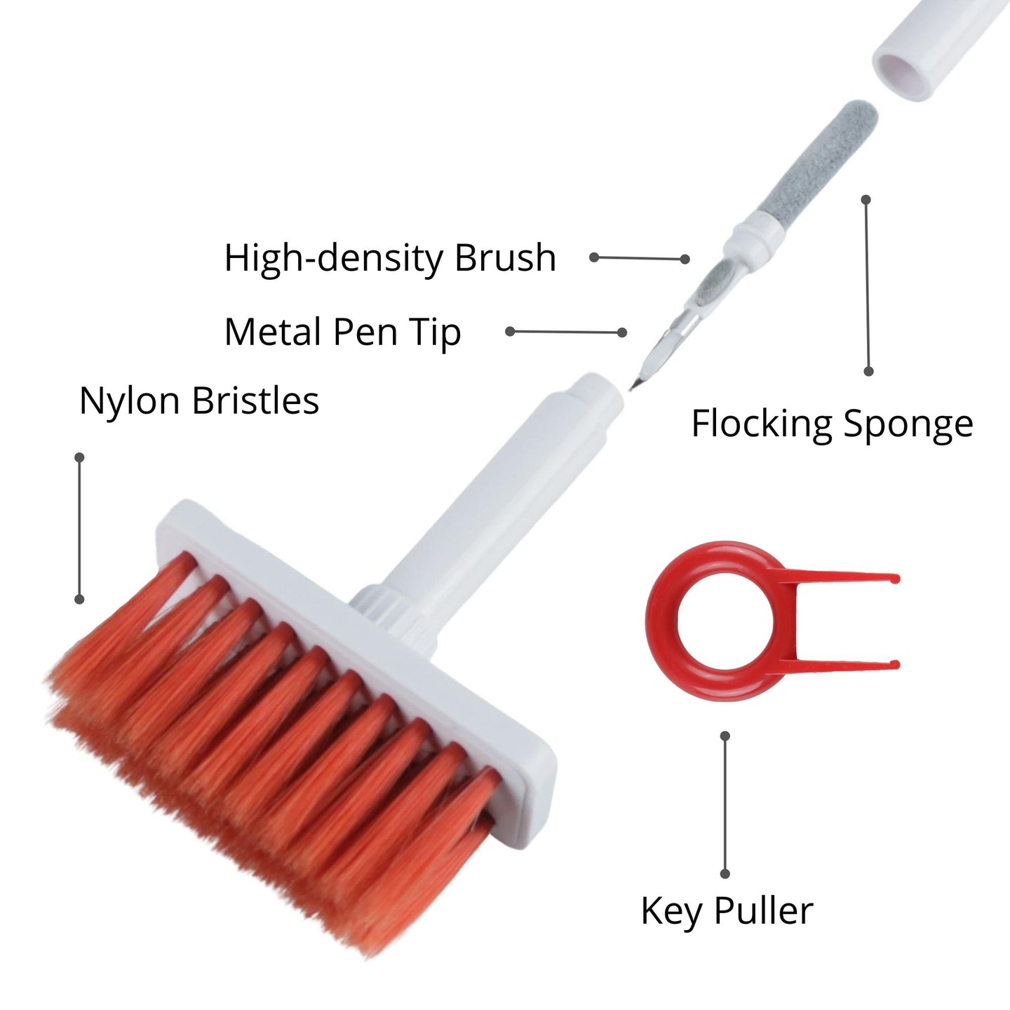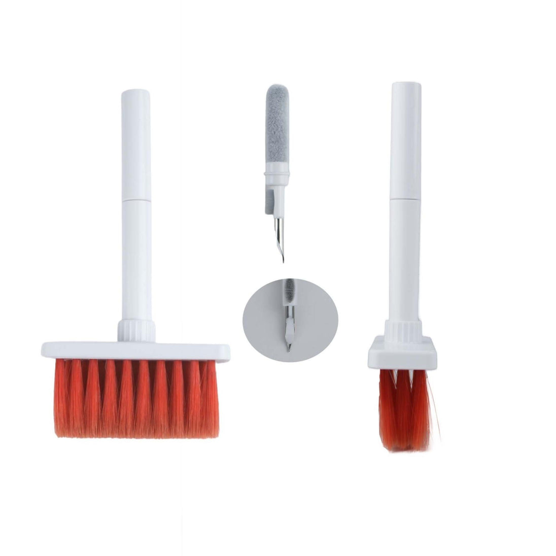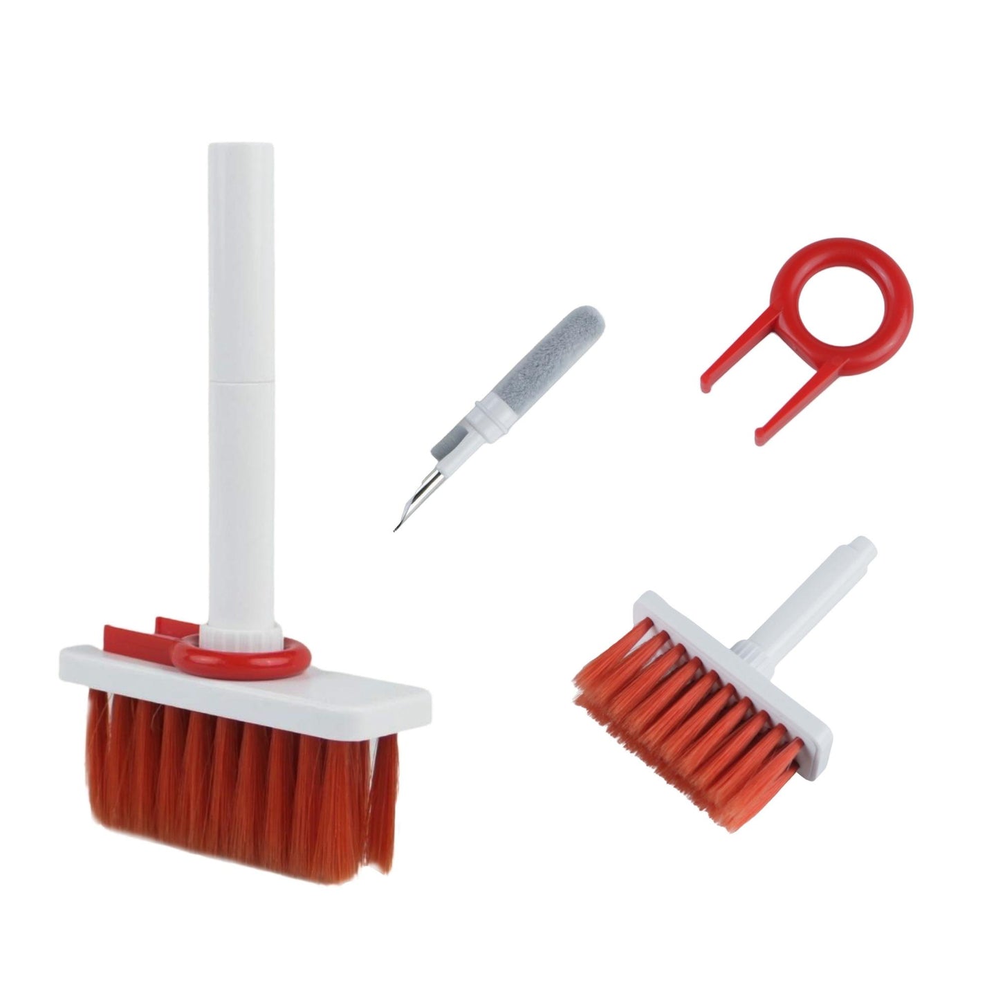 - Dual Head Design: Our 5-in-1 electronic cleaning tool comes with a sophisticated design that incorporates a hidden dual-head within the brush kit for easy use and portability. It comes with Nylon Bristles, Flocking Sponge, High-density Brush, Metal Pen Tip and Keycap Puller to meet a variety of all your electronic cleaning needs.