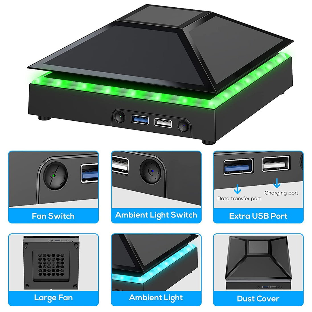 Our xbox series x cooling fan system is specially designed for the Xbox series X, with upgraded and advanced cooling fans and 3 adjustable speed modes that provides the effective cooling preventing your xbox from overheating, reducing power consumption and generally prolonging the lifespan of the console. Also with RGB changing lighting that enhances your gaming atmosphere.