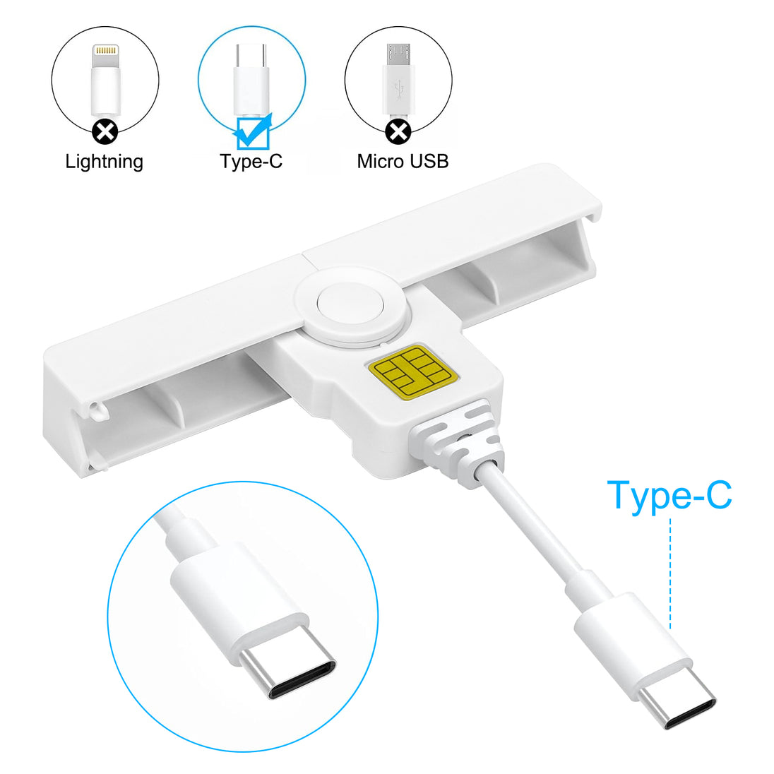 Fold Portable Type-C Smart CAC Card Reader - DOD Military Compliant CAC and PIV Card Reader for Secure Access on Windows Mac OS - White