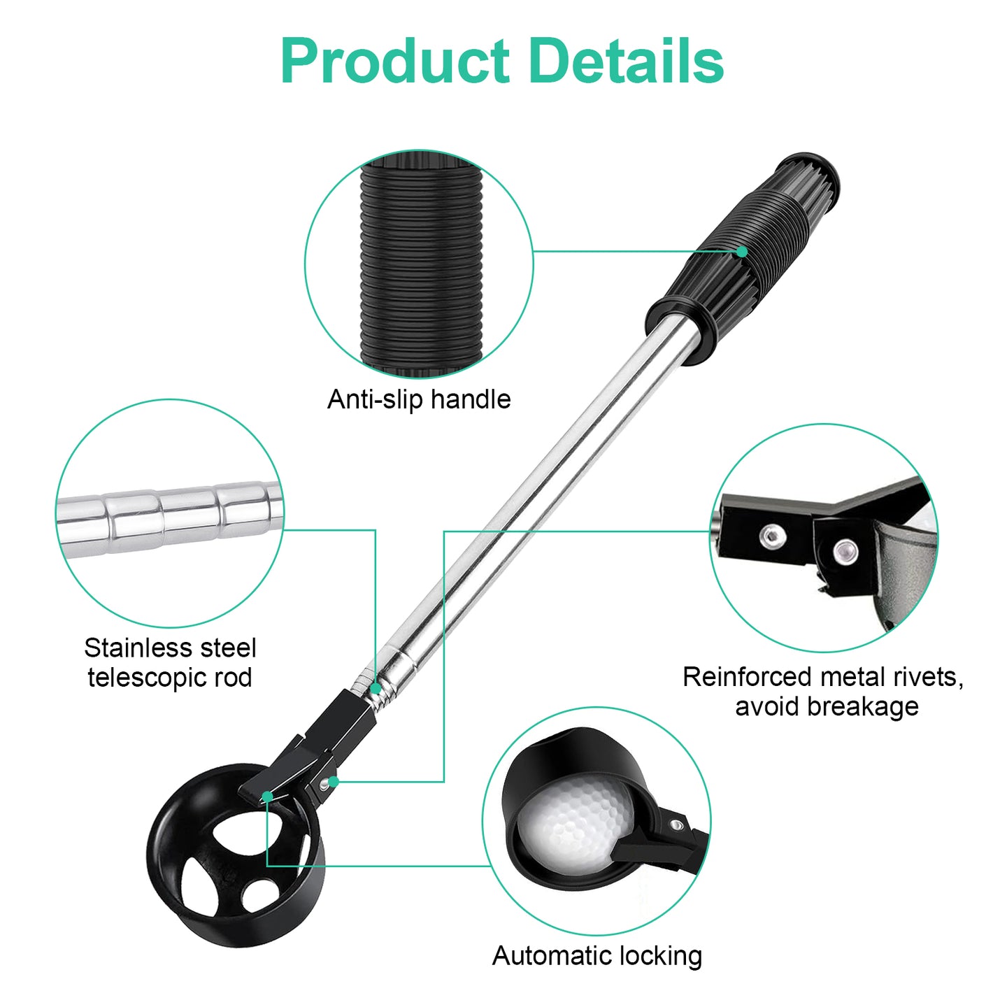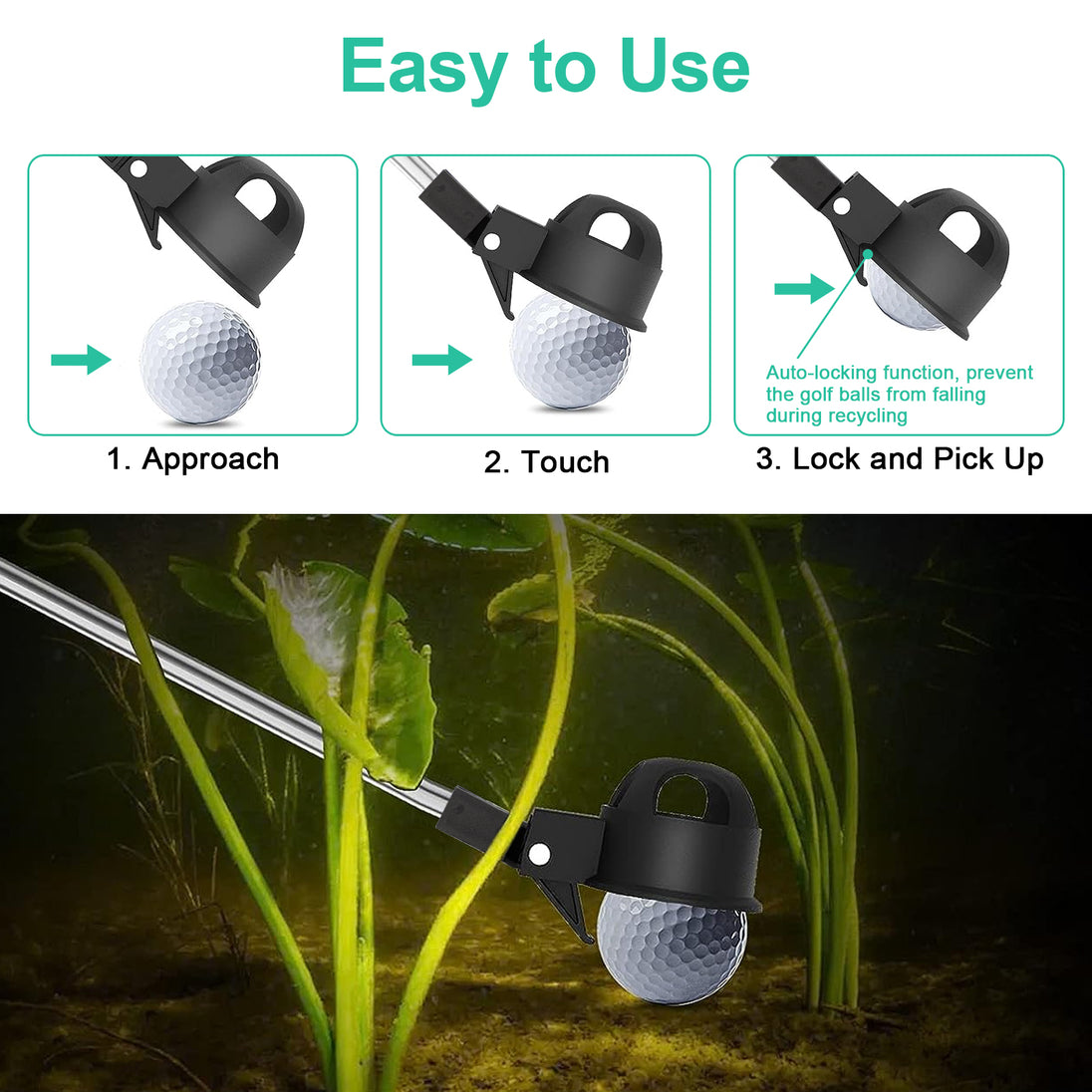 - Automatic locking function: The golf ball retriever for water telescopic adopts an automatic locking ball retriever head design to prevent the golf ball from falling during recycling. Whether you are a new player or an experienced golfer, you can easy to use the golf retriever to pick up golf balls.And it’ll save you money on lost golf balls and pay for itself.
