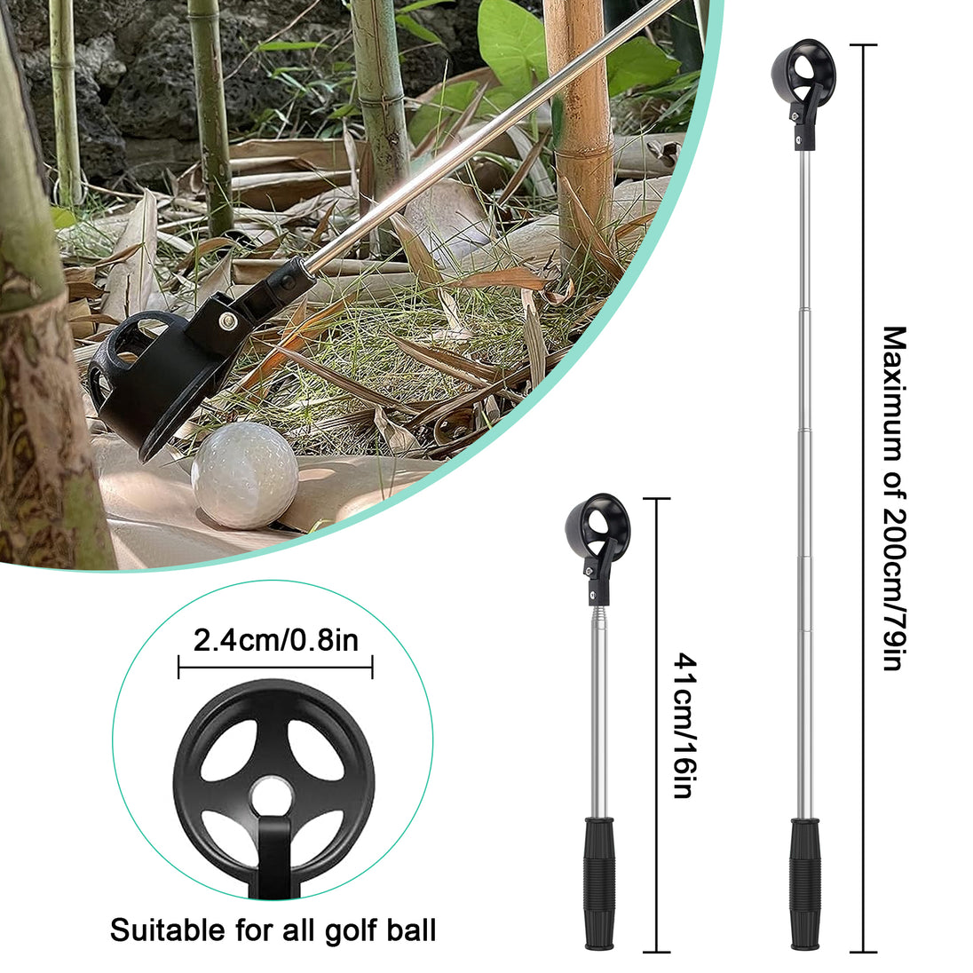 The 41cm/16inch golf ball retriever is made of stainless steel and abs plastic, it don't rust when it was immersed in water.In addition, the shaft of ball retriever tool golf has a good hardness, even if extended to maximum of 2m/79inch, it will not deform so that you can stably control the picking head.