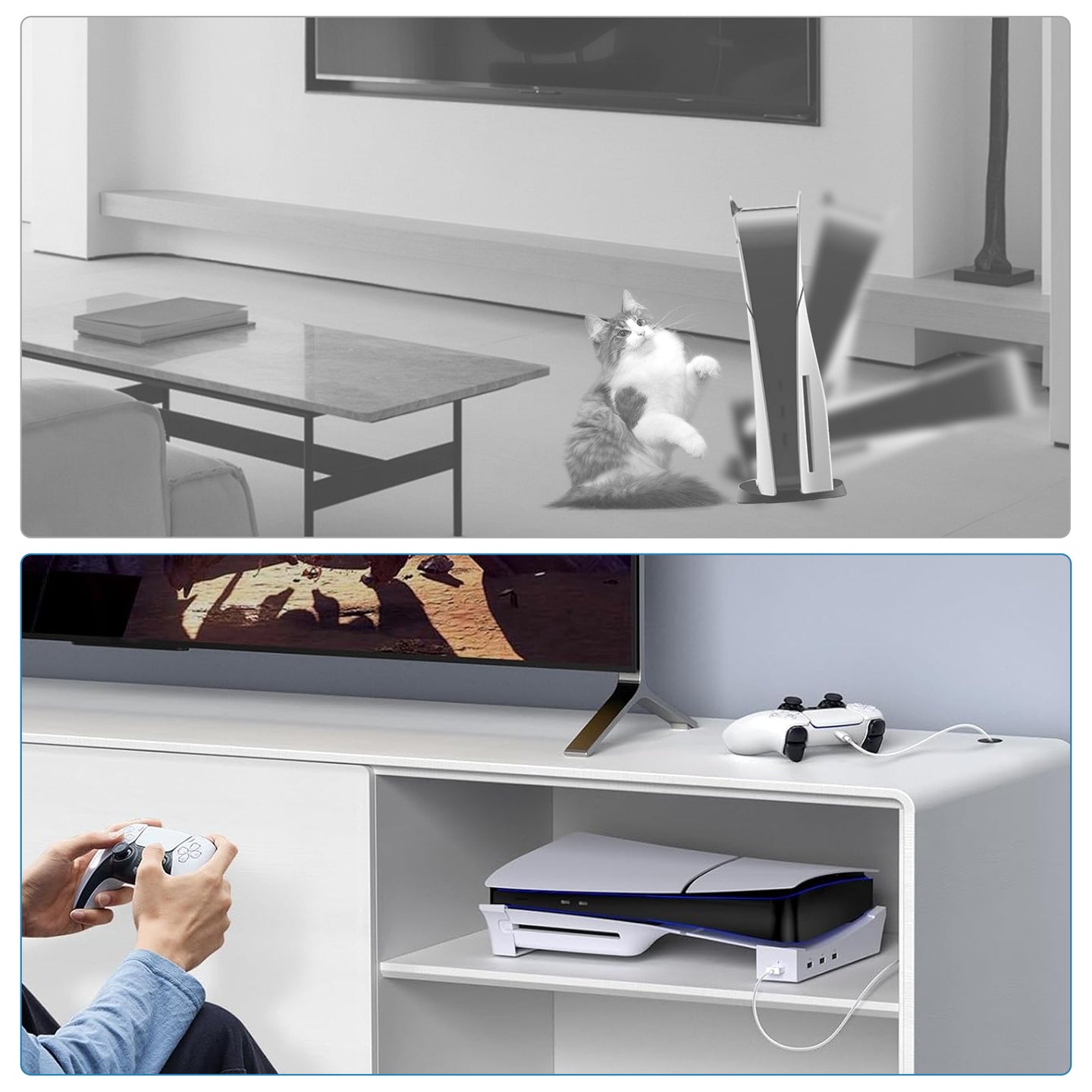Horizontal Stand for PS5 Slim with 4 Port USB Hub - Stable Base for Playstation 5 Slim Disc & Digital Edition, Space-Saving Controller Charging Holder