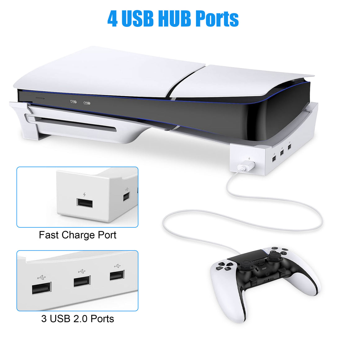 - Type: Horizontal Stand for PS5 Slim with 4 Port USB Hub
