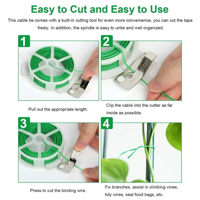 - Easy Application: Our plant tie comes with a built-in cutting tool for even more convenience, you can cut the tape freely to your desired length, no extra tools needed. In addition, the spindle is easy to untie and well organized.
