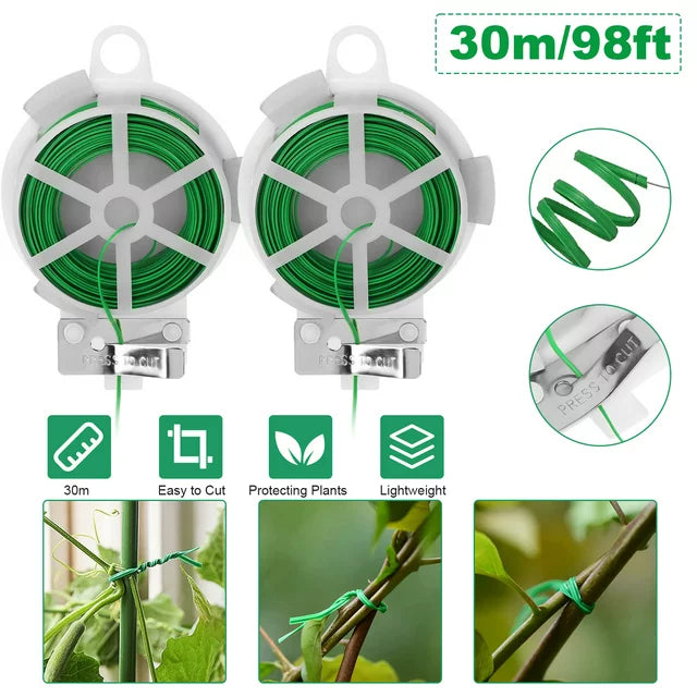 - Premium Material: Our gardening wire is made of high quality green plastic coated iron, each reel measures 30 meters in a reel (98ft), not easy to rust, durable, very plant friendly, won't scratch or damage plants, enough to use for a long time. Its green color blends in naturally with garden plants. Our plant wire is coated with PE making it recyclable for later use after the first time. Saving the planet by recycling! Eco-friendly for both indoor & outdoor purposes.
